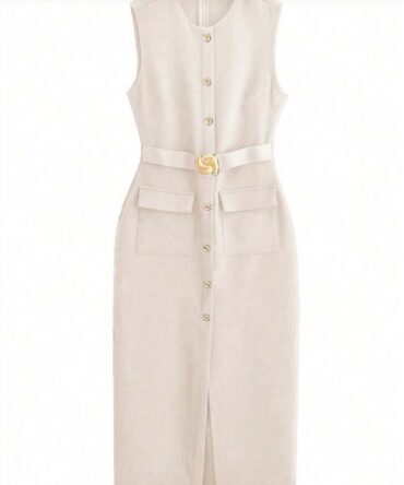 Women Dresses Black Office Long Dresse Belt Button