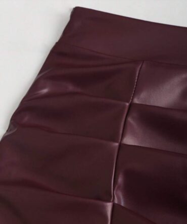 High Waist Pleated Brazilian PU Leather Side Slit Flared A-Line Mini Skirt
